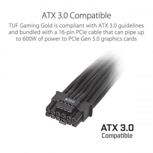 | Package Contents | Power Cord x 1 Motherboard Power Cable x 1 (610mm) CPU Cable x 2 (650mm) PCI-E Gen 5 16-pin Cable x 2 (675mm) PCI-E 1-to-1 Cable x 1 (675mm) PCI-E 1-to-2 Cable x 1 (675mm) SATA 1-to-2 Cable x 1 (400+120 mm) SATA 1-to-3 Cable x 1 (400+120+120 mm) Peripheral 1-to-4 x 1 (400+150+150+150 mm) TUF Gaming Cable tie x 3 User Manual x 1 |