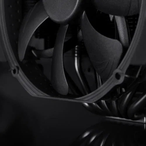 chromax.black design The NH-D15 chromax.black is black from head to toe: Featuring a black coated heatsink, black fans with black anti-vibration-pads, black fan clips and black mounting parts, it’s right at home in all-black builds and easy to integrate with other colour schemes. |
